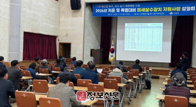 나주시는 지난 3월 27일 보조사업 대상 농가와 농협 관계자를 대상으로 ‘2026년 저온 및 폭염 대비 미세살수장치 지원사업’ 교육 설명회를 개최했다고 31일 밝혔다.