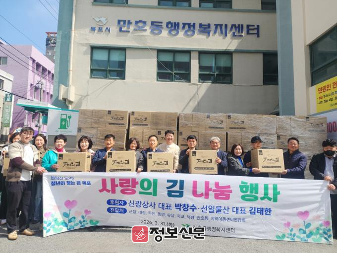 ![]() 신광상사·선일물산, 목포시 만호동에서 ‘사랑의 김’ 나눔 행사 열어 |