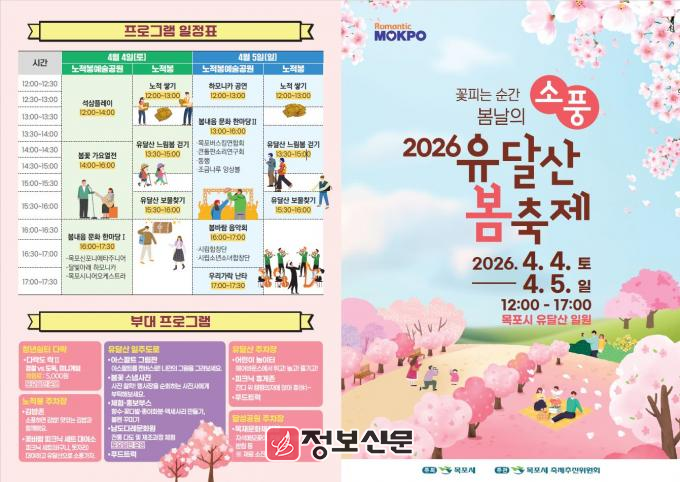 목포시는 오는 4월 4일과 5일 이틀간 유달산 일원에서 ‘2026 유달산 봄축제’를 개최한다고 밝혔다.