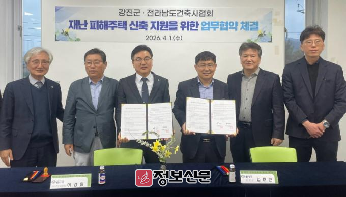강진군은 지난 1일 이경일 전남건축사회장이 참석한 가운데 이 같은 내용을 골자로 하는 ‘재난피해 주택 신축 지원을 위한 업무협약’을 체결했다.