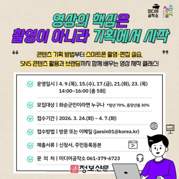 ![]() 화순군 청년센터 미디어공작소, 영상 제작 교육 운영 |