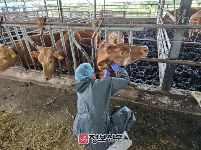 검사는 최근 경기 고양시 한우 농가에서 구제역이 발생함에 따라 당초 일정보다 앞당겨 실시한 상반기 백신 일제접종이 농가에서 제대로 이뤄졌는지 확인하고 야외 바이러스 감염 여부를 사전에 차단하기 위한 것이다.