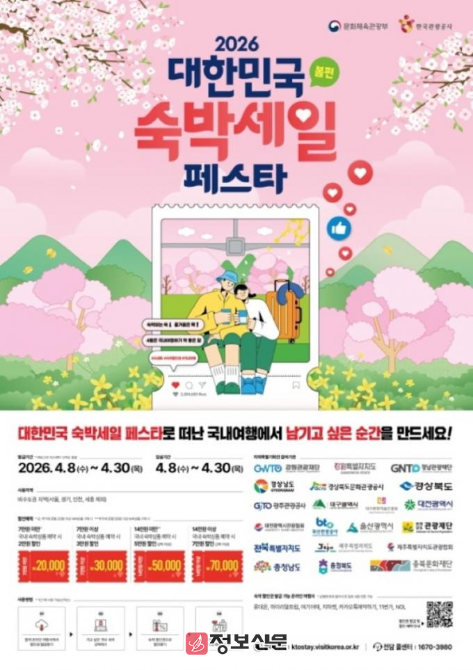 숙박세일페스타는 지역 관광 활성화와 여행 수요 확대를 위한 전국 단위 숙박 할인 지원사업으로, 전남도는 올해 총 2만 2천 장의 할인쿠폰을 확보해 봄편·가을편 할인행사를 진행한다.