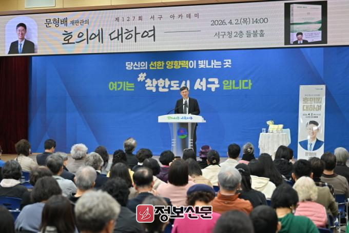 서구는 지난 2일 서구청 들불홀에서 열린 ‘127회 서구 아카데미’에 문형배 전 헌법재판소장 권한대행을 초청해 ‘호의에 대하여’를 주제로 특별강연을 개최했다.
