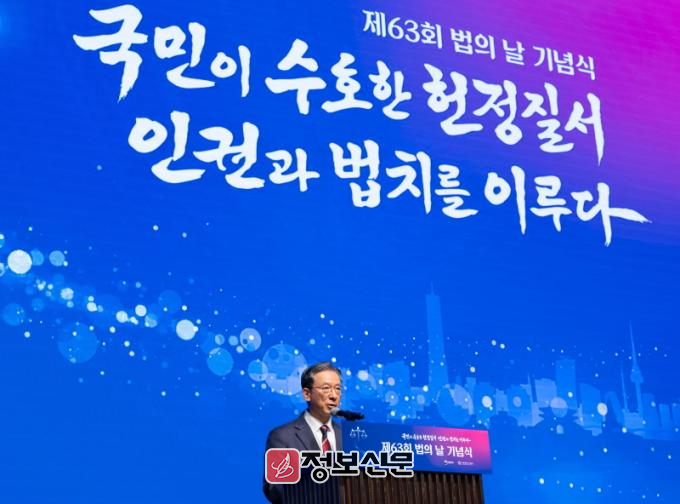 정성호 법무부장관은 기념사를 통하여 “강자의 횡포를 막고 약자의 눈물을 닦아주는 억강부약(抑强扶弱)과, 잘못된 과거를 바로잡는 파사현정(破邪顯正)이 곧 법의 정신”이라고 강조하고, “주권자께서 수호해 주신 이 소중한 헌정의 가치를 인권과 법치로 꽃피우는 것, 그것이 법무부에 주어진 지엄한 명령임을 명심하고, 정의와 인권이 모두의 삶 속에 공기처럼 스며들며, 법치라는 울타리 속에서 서로 존중하고 포용하는 대한민국을 만들어 나가겠다”고 다짐하였다.