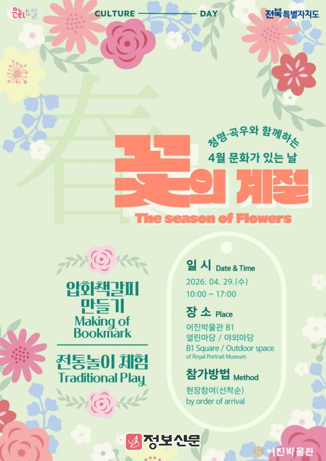![]() 전주시 어진박물관, 4월 문화가 있는 날 맞아 꽃의 계절 체험프로그램 운영 |