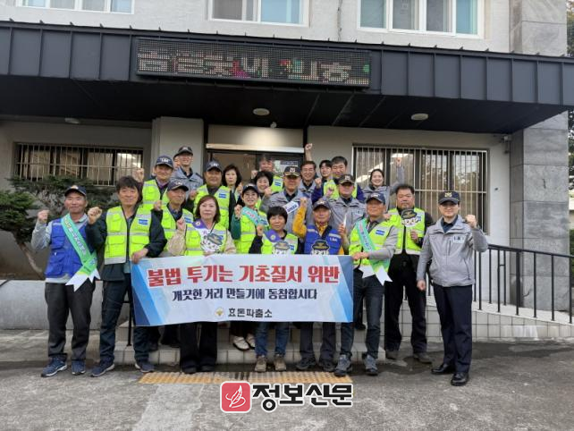강진원 효돈파출소장은 “민·경 협력 치안 활동을 통해 공동체 치안을 공고히 할 것”이라며, “앞으로도 기초질서 위반 행위에 대한 사전 예방과 계도 중심으로 주민 불편을 최소화하겠다”고 밝혔다.