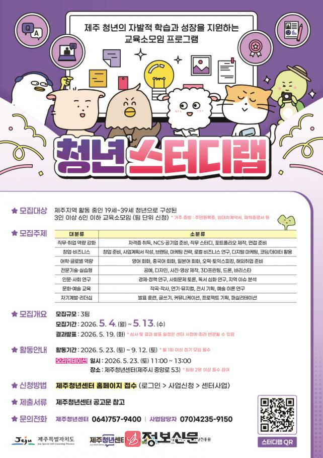 ![]() 제주청년센터, 청년 교육 소모임 지원 사업 ‘청년 스터디랩’첫 시행 |