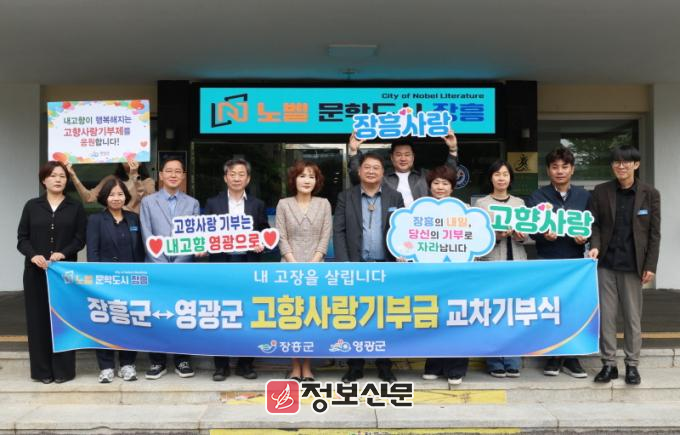 이번 교차 기부는 장흥군 행복민원과와 영광군 민원지적과 직원들이 자발적으로 참여해 서로의 지역에 기부를 진행한 것으로, 고향사랑기부제에 대한 관심을 높이고 지자체 간 유대와 협력 기반을 강화하기 위해 마련됐다.