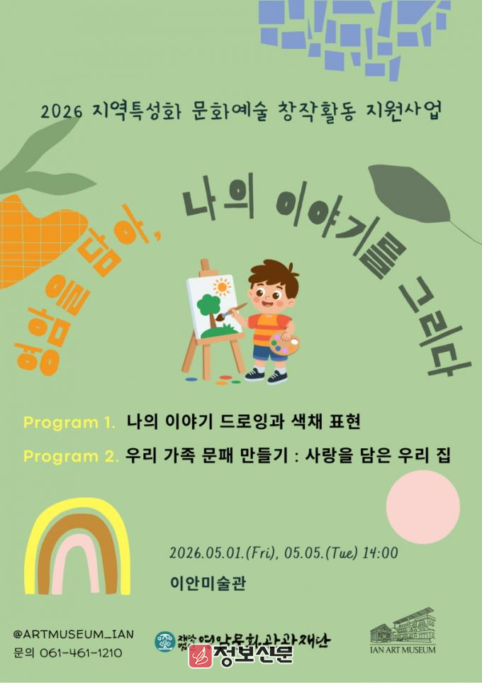이안 미술관 박지현 담당자는 “이번 프로그램을 통해 다양한 영암 주민들이 가족의 의미를 되새기고, 어린이처럼 동심으로 돌아가 소통하며 소중한 추억을 만드는 계기가 되길 바란다”고 전했다.