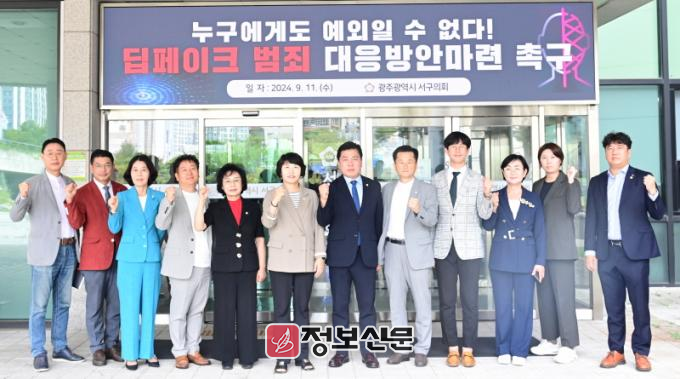 서구의원들은 이날 발의한 건의안을 통해 정부와 국회에 ▲반여성적 정책 방향 수정 ▲성평등 감수성 교육과 디지털 윤리교육 강화 ▲딥페이크 관련 법안의 조속한 통과 ▲딥페이크 범죄 대응 대책마련을 위한 민관공동특별대응 조직 구성을 촉구했다.