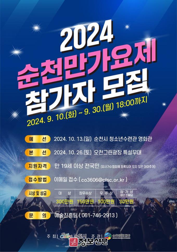 ![]() (재)순천문화재단, ‘2024 순천만가요제’ 참가자 모집 |