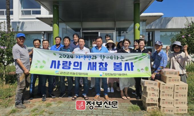 이날 봉사활동에는 20명의 귀농인협회원들과 체류형귀농사관학교 입교생이 참여해 약식과 음료 등으로 구성된 ‘새참 세트’를 준비, 칠량면 구로·봉황마을, 군동면 문화·오산마을, 병영면 신지마을 마을회관에서 직접 전달했다.