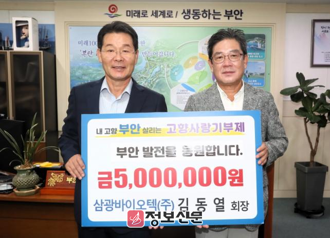 ![]() 김동열 삼광바이오텍(주) 회장, 부안군 고향사랑기부금 500만원 기탁 |