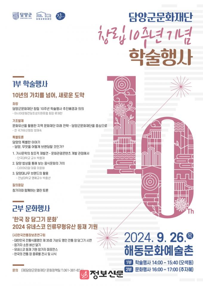 ![]() (재)담양군문화재단, 창립 10주년 기념 학술행사 개최 |