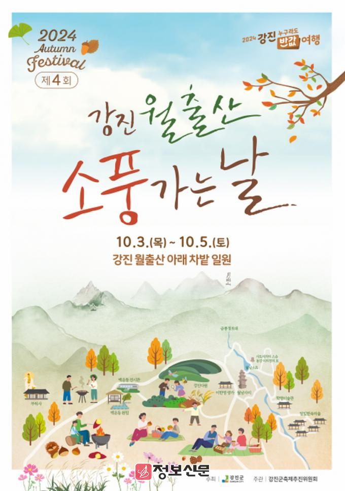 강진군 관계자는 “제4회 강진 월출산 소풍가는 날 행사야말로, 천혜의 자연경관이 가득한 월출산 권역에서 다양한 프로그램들과 혜택이 가득한 행사를 즐길 수 있는 절호의 기회”라면서 “가을의 정취가 가득한 강진 월출산에서 잊지 못할 추억을 안고 가길 바란다”고 말했다.