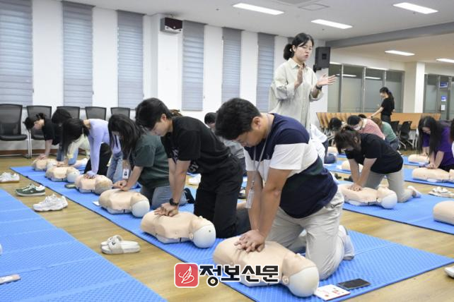 이번 교육에서는 전북대학교병원 응급의료센터의 전문 강사진이 현장 중심의 실습 위주 프로그램을 진행했으며, 특히 심폐소생술과 자동심장충격기 사용법 등 실제 상황에서 즉시 활용 가능한 기술 훈련에 중점을 두어 참가자들의 호응을 얻었다.