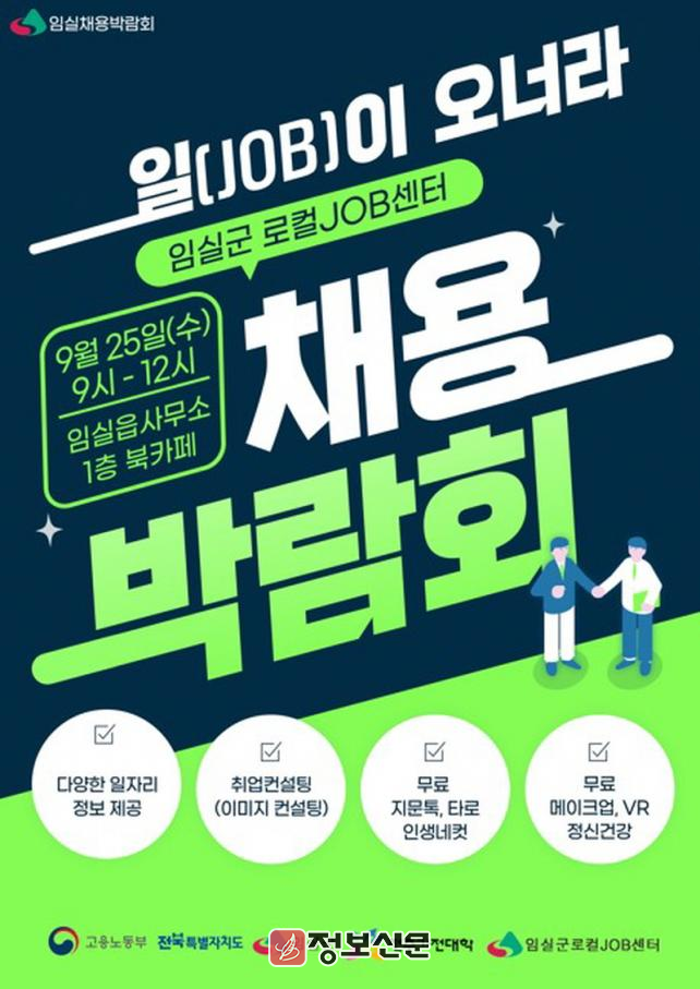 한편, 채용박람회에 대한 자세한 사항은 임실군로컬JOB센터(063-642-9296) 또는 임실군청 경제교통과(063-640-2453)으로 문의하면 된다.