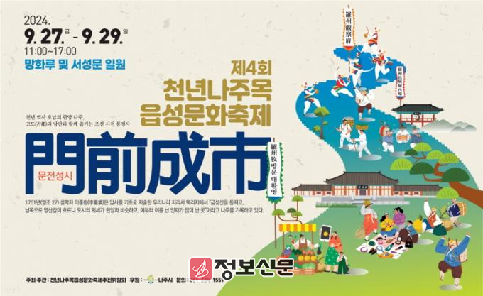 나주시(시장 윤병태)는 오는 27일부터 29일까지 3일간 ‘제4회 천년나주목읍성문화축제’를 개최한다고 20일 밝혔다.