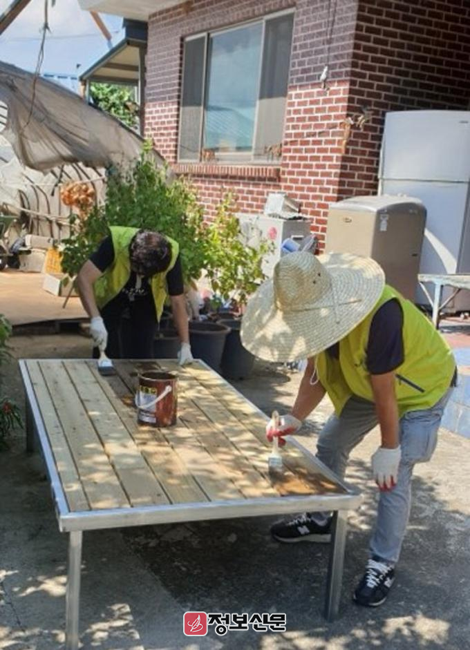이날 봉사단은 고서면과 봉산면의 어르신 가정에 경로당이 멀어 이용이 불편한 어르신들이 삼삼오오 모여 앉아 편안한 시간을 보낼 수 있도록 평상을 만들어 지원했다.