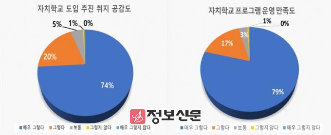 한편, 광주시교육청이 지난 8월 30일부터 9월 10일까지 자치학교 교직원을 대상으로 만족도 조사를 실시한 결과 응답자의 94%가 도입 취지에 공감한다고 답했다. 또 운영 프로그램에 대해 만족한다는 응답은 96%에 달했다.