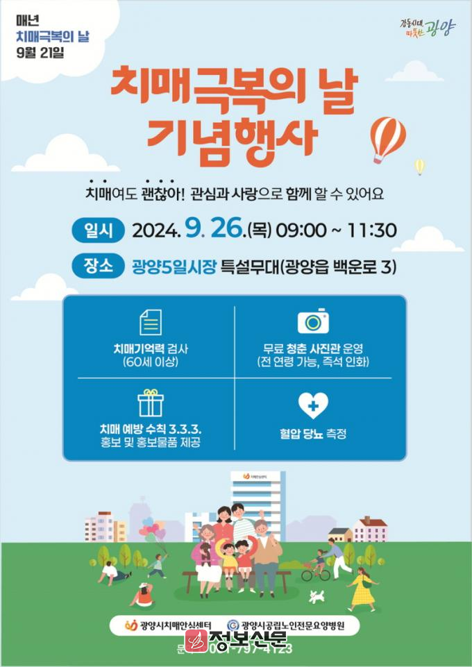 ![]() 광양시, 「치매극복의 날」 기념 ‘치매 인식 개선’ 캠페인 실시 |