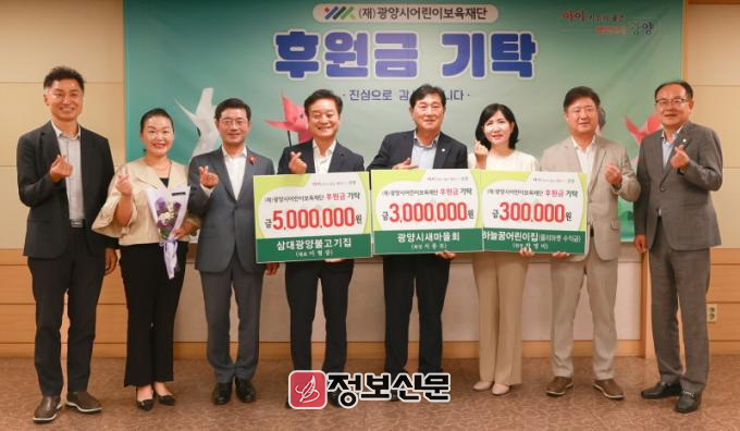 이광용 (재)광양시어린이보육재단 이사장은 “어린이보육재단에 꾸준히 관심을 가져주셔서 진심으로 감사드린다”라며 “여러분의 소중한 후원금은 광양시 아이들을 위한 보육사업에 뜻깊게 사용하겠다”라고 전했다.