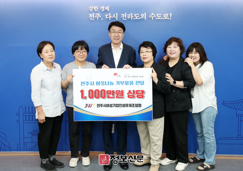 전주시여성기업인섬유제조협회(회장 한춘자)는 23일 도움이 필요한 이웃을 위해 사용해달라며 전주시에 1000만 원 상당의 물품을 기부했다.