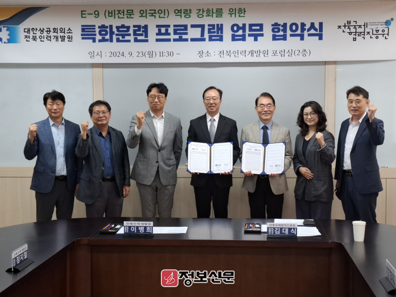 23일 군산 전북인력개발원에서 체결한 이번 협약에서 두 기관은 전북 내 외국인 근로자의 안정적인 정착과 업무 능력 향상 교육 부분을 지속적으로 협력하기로 했다.