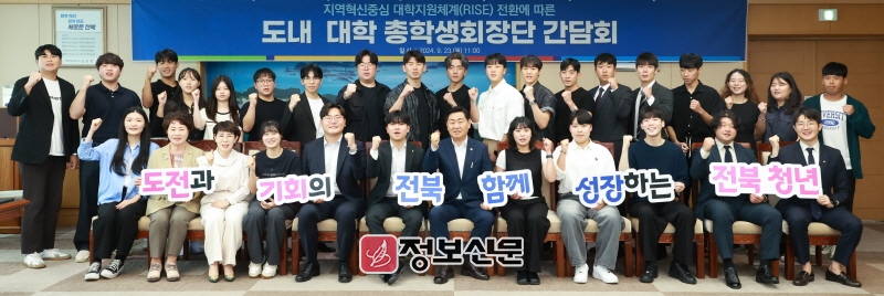 전북특별자치도는 23일 도청 회의실에서 김관영 전북특별자치도지사와 도내 14개 대학 총학생회장단이 지역과 대학의 상생 발전을 위한 소통 간담회를 가졌다고 밝혔다.