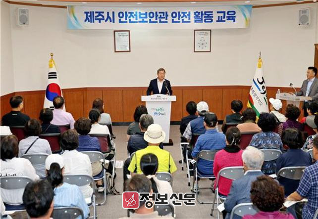 교육에 참석한 김완근 제주시장은 “안전보안관으로서 사명감을 가지고 생활 속 위험 요소를 예민하게 감지하여 시민의 생명과 재산을 보호하는 파수꾼 역할을 해 주시기를 바란다”고 당부했다