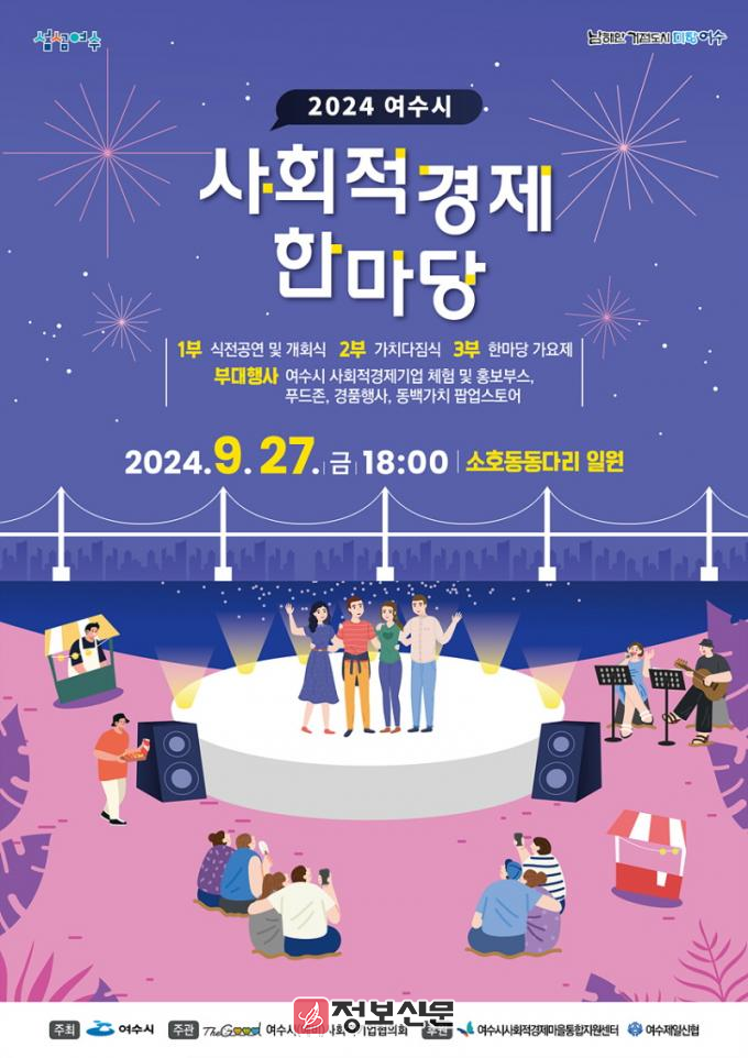 ![]() 오는 27일 여수 소호동동다리 A광장 일원에서 ‘2024 여수시 사회적경제 한마당’이 열린다. |
