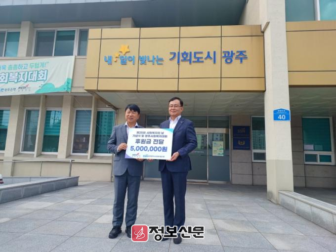 ![]() 한국건강관리협회 광주전남지부, 광주광역시 사회복지협의회 후원금 전달(사진제공: 한국건강관리협회 광주전남지부) |