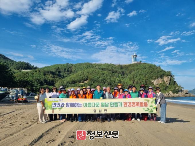 이번 해수욕장 환경정화 활동은 제14호 태풍(풀라산)의 영향으로 집중호우와 강풍, 너울 등에 의해 많은 양의 스티로폼, 각종 어구, 플라스틱 등 일반쓰레기가 백사장으로 밀려와 실시되었으며, 영남면 지역사회단체(부녀회, 생활개선회, 의용소방대)와 직원 등 40여 명이 참여하고 장비를 동원해 진행했다.