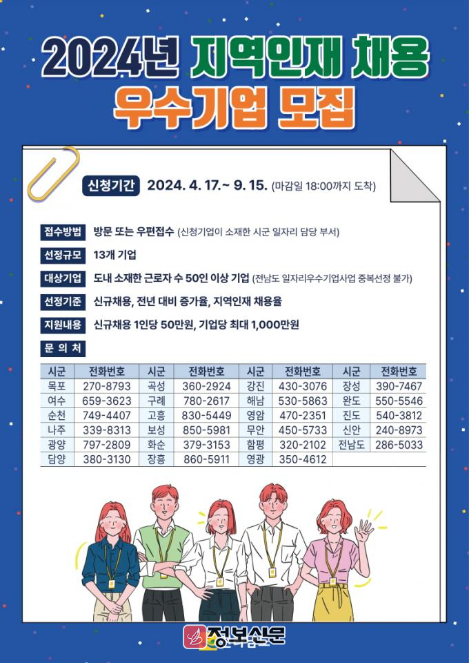 지역인재 채용 우수기업 지원사업은 전남에 있는 고등학교 또는 대학을 졸업한 지역인재를 채용한 기업을 선정해 지원하는 사업이다.