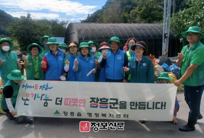 이에 장흥읍 복지기동대원들과 장흥읍 새마을회 등 20여명이 넘는 자원봉사자들이 침수피해를 입은 가정을 방문하여 수해 쓰레기 정리 등 피해복구를 위한 구슬땀을 흘렸다.