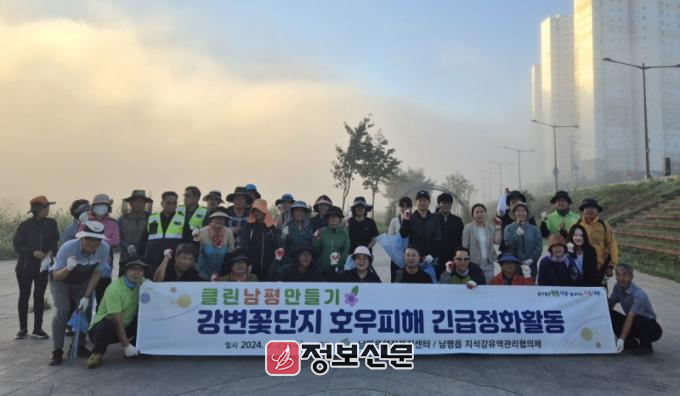 집중 호우 당시 남평교와 강변도시 산책로 등에는 홍수주의보가 발령되었으며 떠내려온 하천 쓰레기와 잡목·잡풀 등을 집중적으로 제거하고 운동기구와 자전거도로를 청소했다.