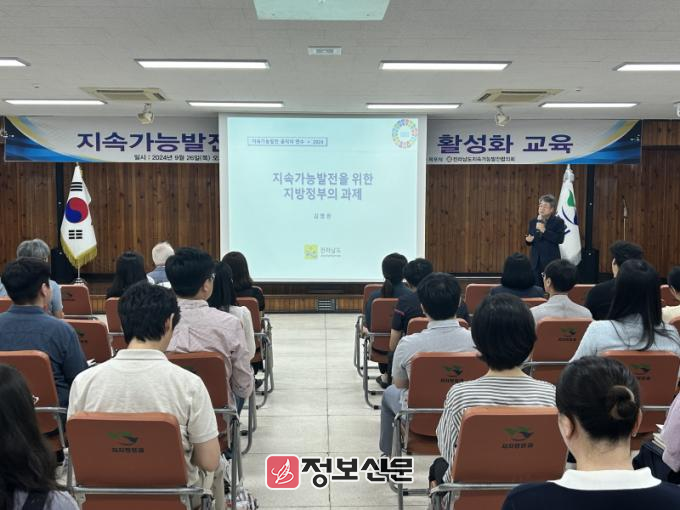 전라남도지속가능발전협의회(상임의장 이재승) 주관으로 진행된 이번 교육은 김병완 광주대학교 교수가 「지속가능발전을 위한 지방정부의 과제」를 주제로 강연했다.