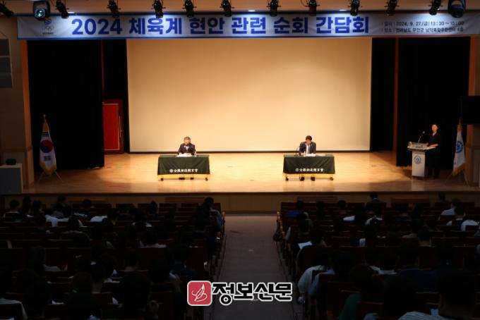대한체육회(회장 이기흥)와 전라남도체육회(회장 송진호)에 따르면, 대한체육회는 27일 오전에는 전남 22개 시․군체육회장을, 오후에는 시‧군체육회 및 회원종목단체 관계자, 생활체육지도자, 전문체육지도자, 스포츠클럽관계자 등을 대상으로 2024년 하반기 순회 간담회를 개최했다고 밝혔다.