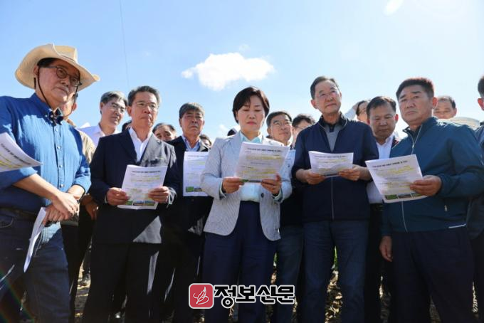 한편, 해남군은 이날 현장보고를 통해 농업 현안에 대한 건의사항도 전달했다. 특히 최근 큰 피해를 입고 있는 이상고온으로 인한 벼멸구 피해를 농업재해로 인정해 줄것과 피해곡의 조기 수확에 따른 생산량 감소 보전을 위해 매입 가격을 인상해 줄 것을 요청했다.