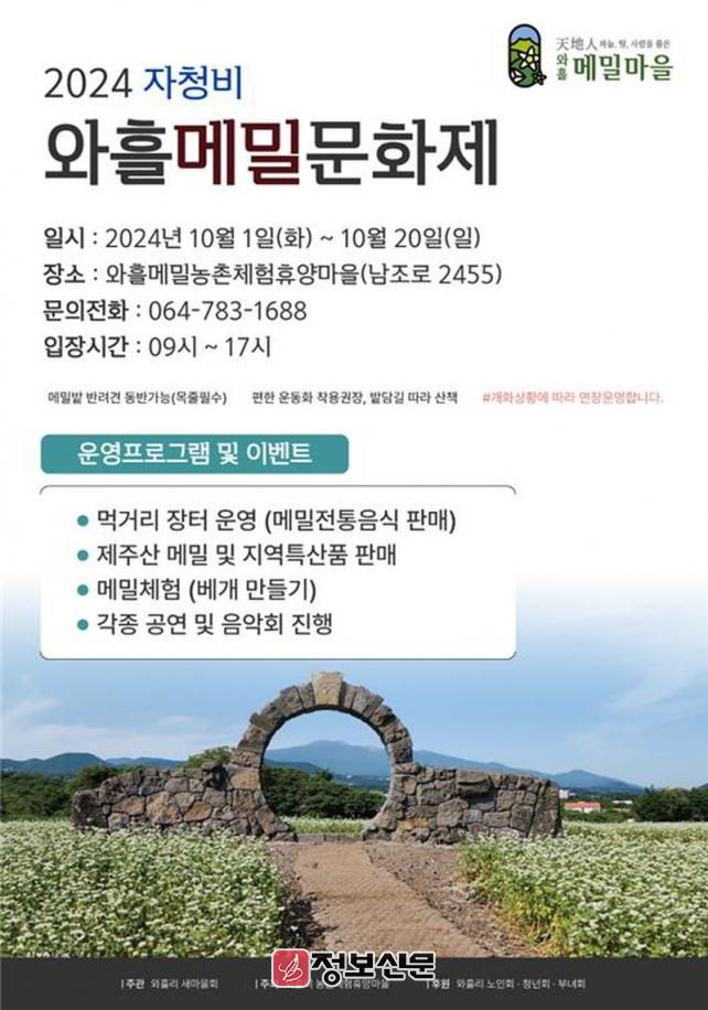 ![]() 제주시 조천읍, 2024 자청비 와흘메밀문화제 개최 |