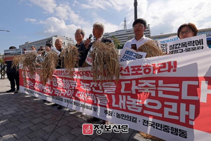 이날 용산 대통령실 앞에서는 전국농민회총연맹, 전국쌀생산자회협회 등이 주최한 병충해·수혜 특별대책 촉구대회가 열렸으며 전종덕 국회의원(진보당 비례대표) 등이 참석했다.
