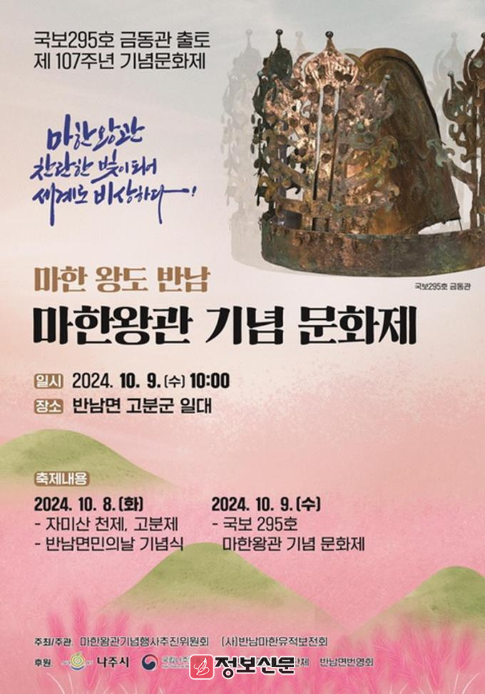 나주시(시장 윤병태)는 오는 9일 오전 10시 반남 고분군, 국립나주박물관 일원에서 ‘2024 나주 금동관 출토 기념문화제’가 개최된다고 30일 밝혔다.