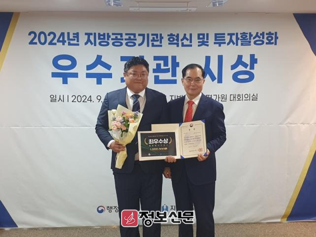 이번 수상은 지방공기업 투자 활성화를 위한 투자노력 및 성과, 효과 등 총 4개의 부문에서 평가위원회의 엄격한 평가를 통해 선정되었으며, 이를 통해 기관과 개인에게 각각 행정안전부장관 표창이 수여되었다.