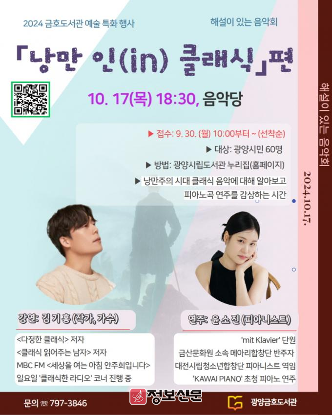 ![]() 광양금호도서관, 가을을 맞아 「해설이 있는 음악회」 운영 |