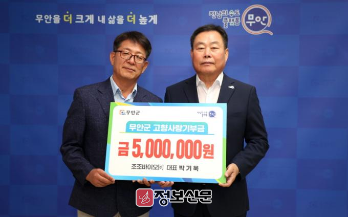 ![]() 조조바이오㈜ 박기욱 대표, 무안군에 고향사랑기부금 500만원 기탁 |