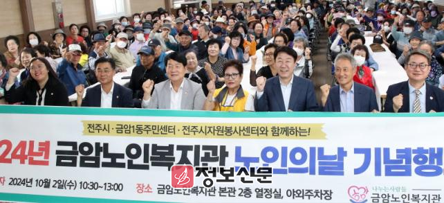 사단법인 전주시자원봉사센터(이사장 최이천)와 금암1동(동장 정내섭)은 2일 금암노인복지관(관장 최재훈)에서 노인 300여 명을 대상으로 따뜻한 점심과 문화공연, 건강 돌봄 등 나눔 실천의 장인 ‘사랑의 희망열차 전문이동봉사활동’을 펼쳤다.