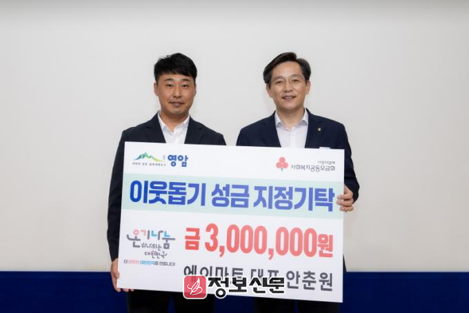 ![]() 안춘원 에이마트 대표, 영암군에 이웃돕기 성금 300만원 기부 |