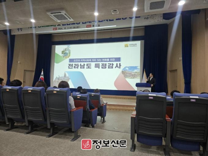 감사원에서 16년간 근무 후, 2021년부터 전남도청 감사관으로 재직 중인 감사 전문가 김 감사관은, 이날 ‘도민과 지역사회에 의미 있는 변화를 위한 전라남도 특정감사’를 주제로 강연했다.