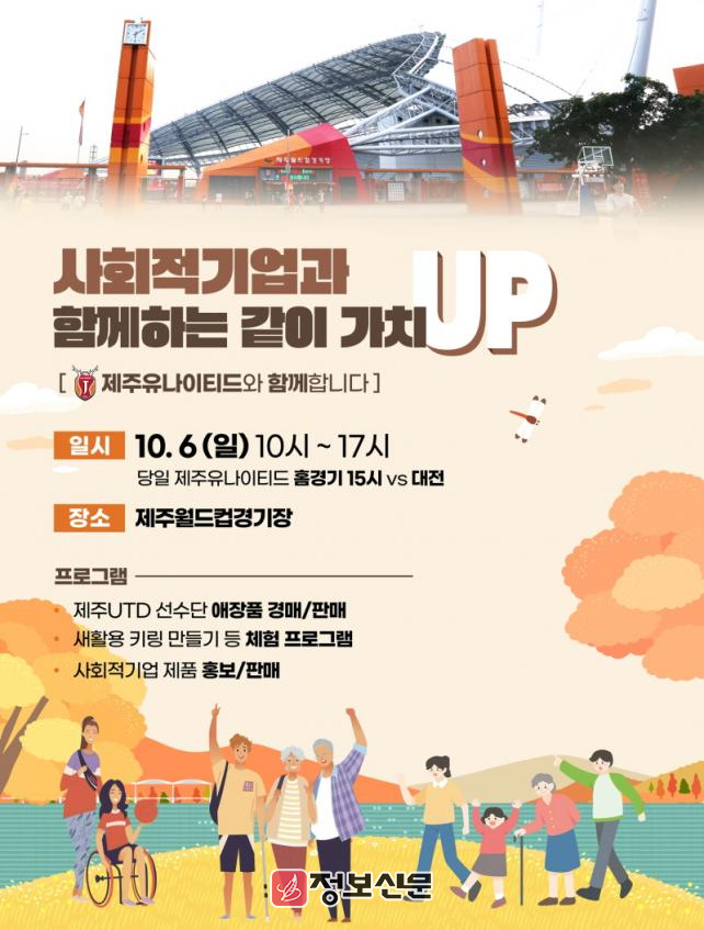 고용노동부, 제주특별자치도, 한국사회적기업진흥원, 제주사회적기업협의회, 제주유나이티드가 함께 주최/주관하는 이번 행사는 경기 당일 오전 10시부터 오후 5시까지 제주월드컵경기장 일대에서 열린다.